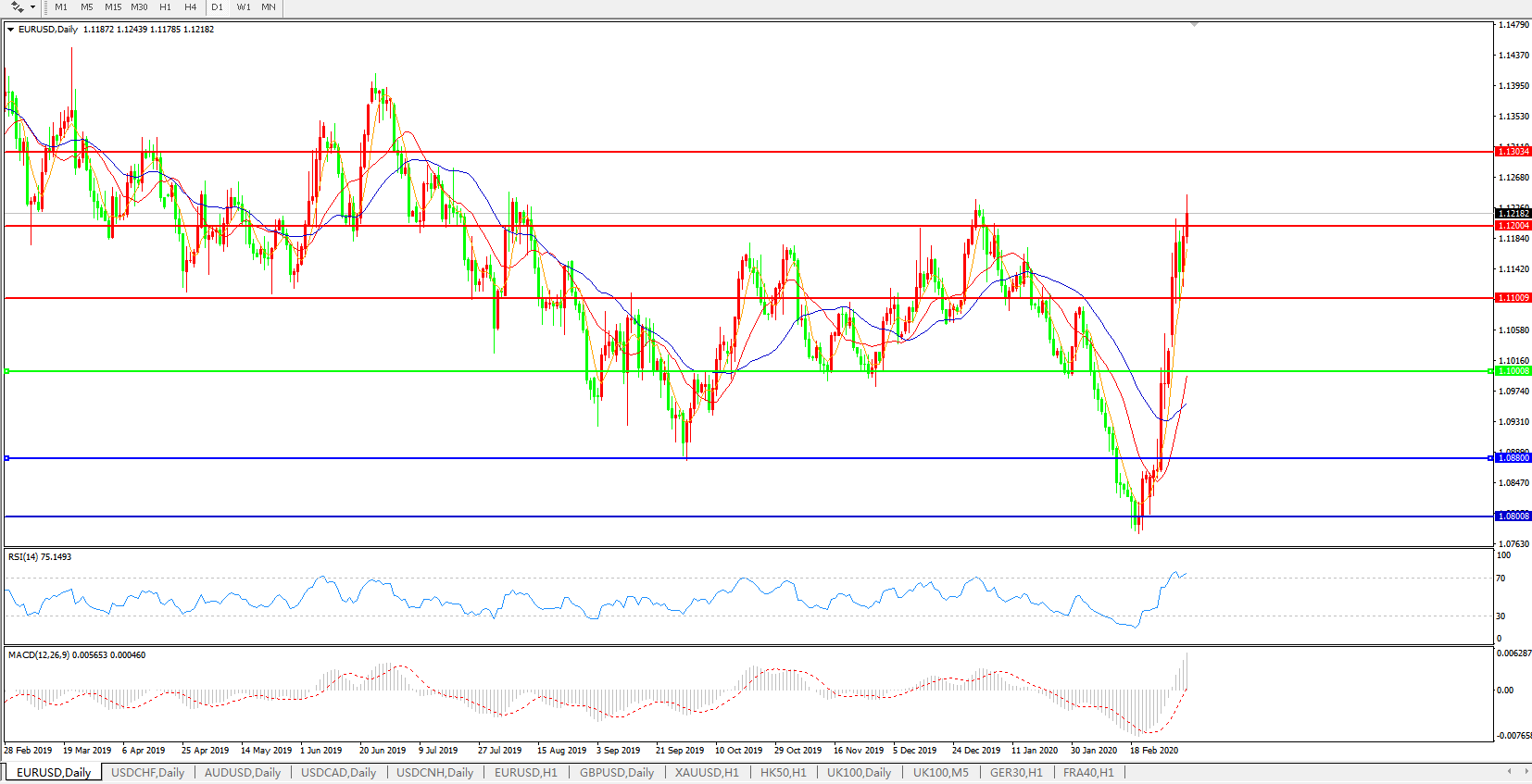 欧元兑美元EURUSD 日线图: