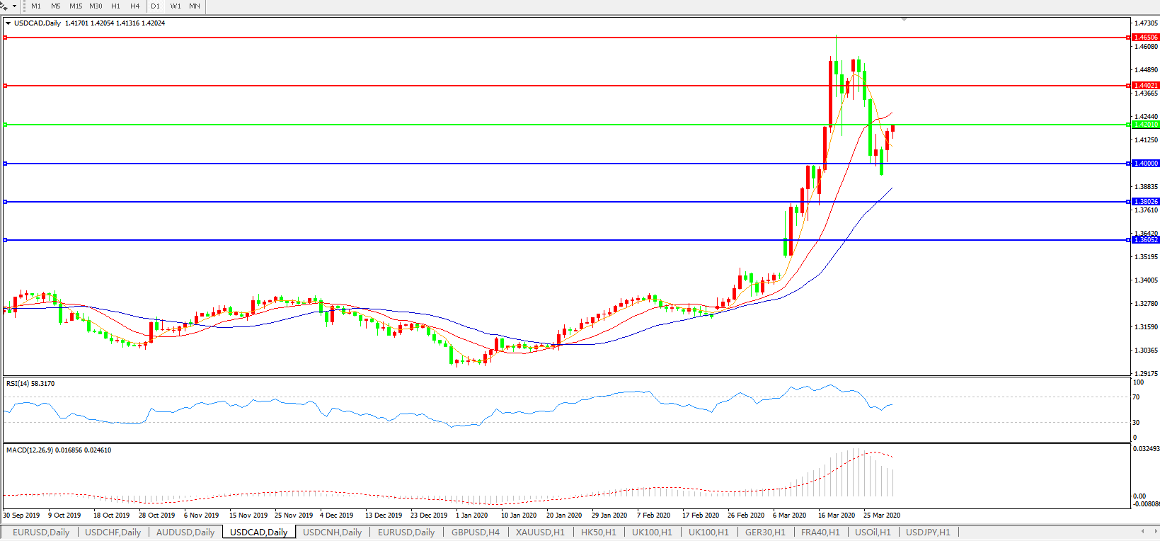 美元兑加元USDCAD 日线图: