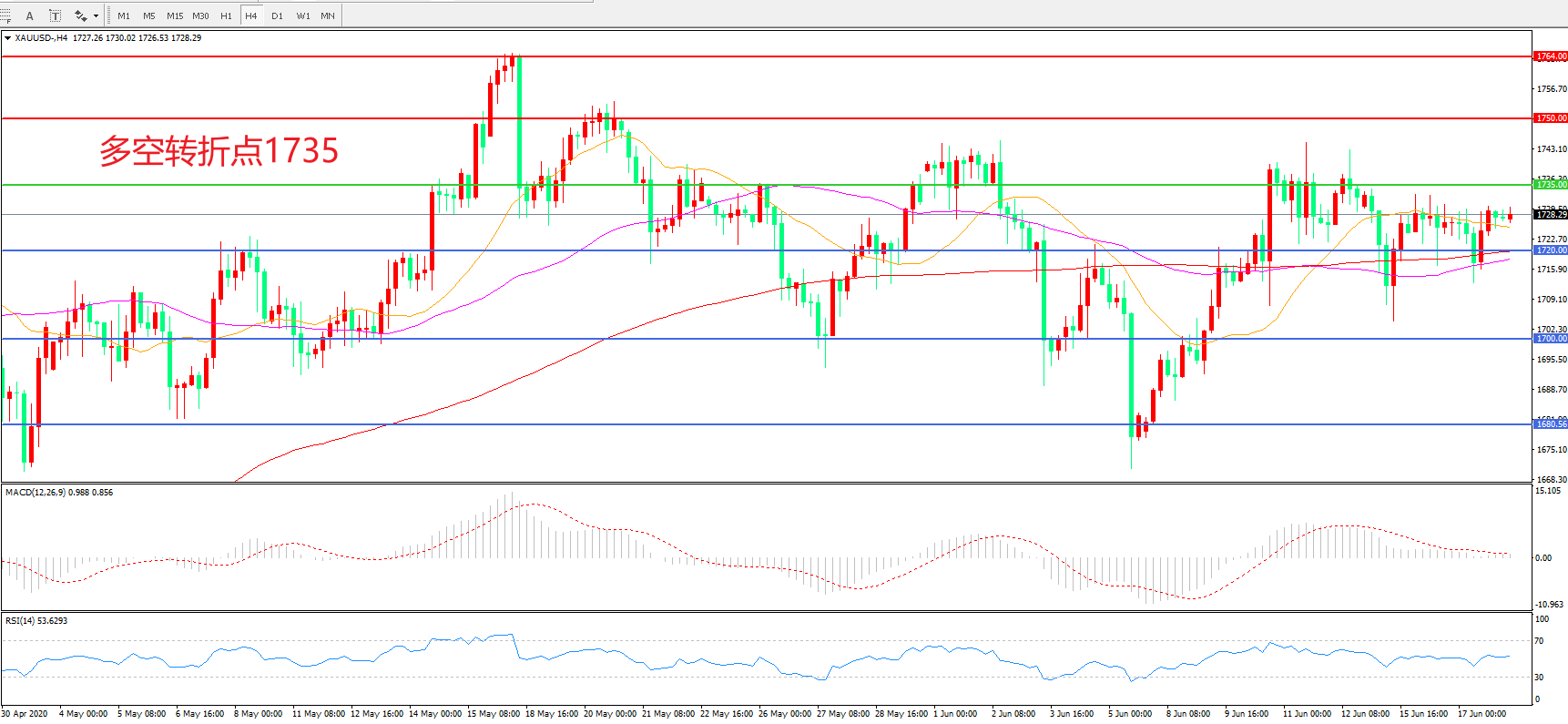 交易策略:在1735.00之下看跌,目标1720.00 1700.00
