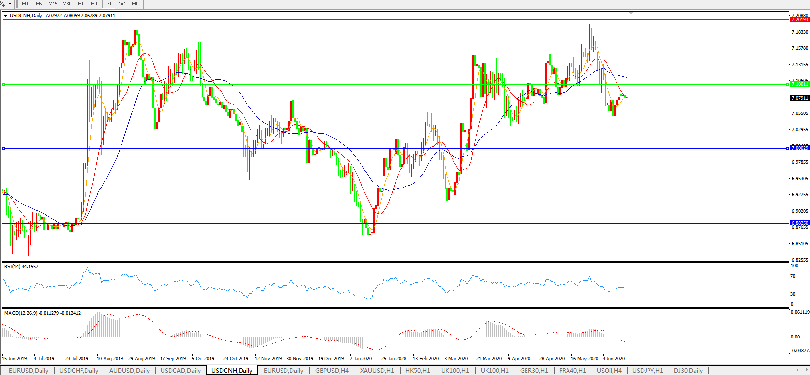 交易策略: 在7.1000之下,看跌,目标价位为7.0000,然后为6.8820。