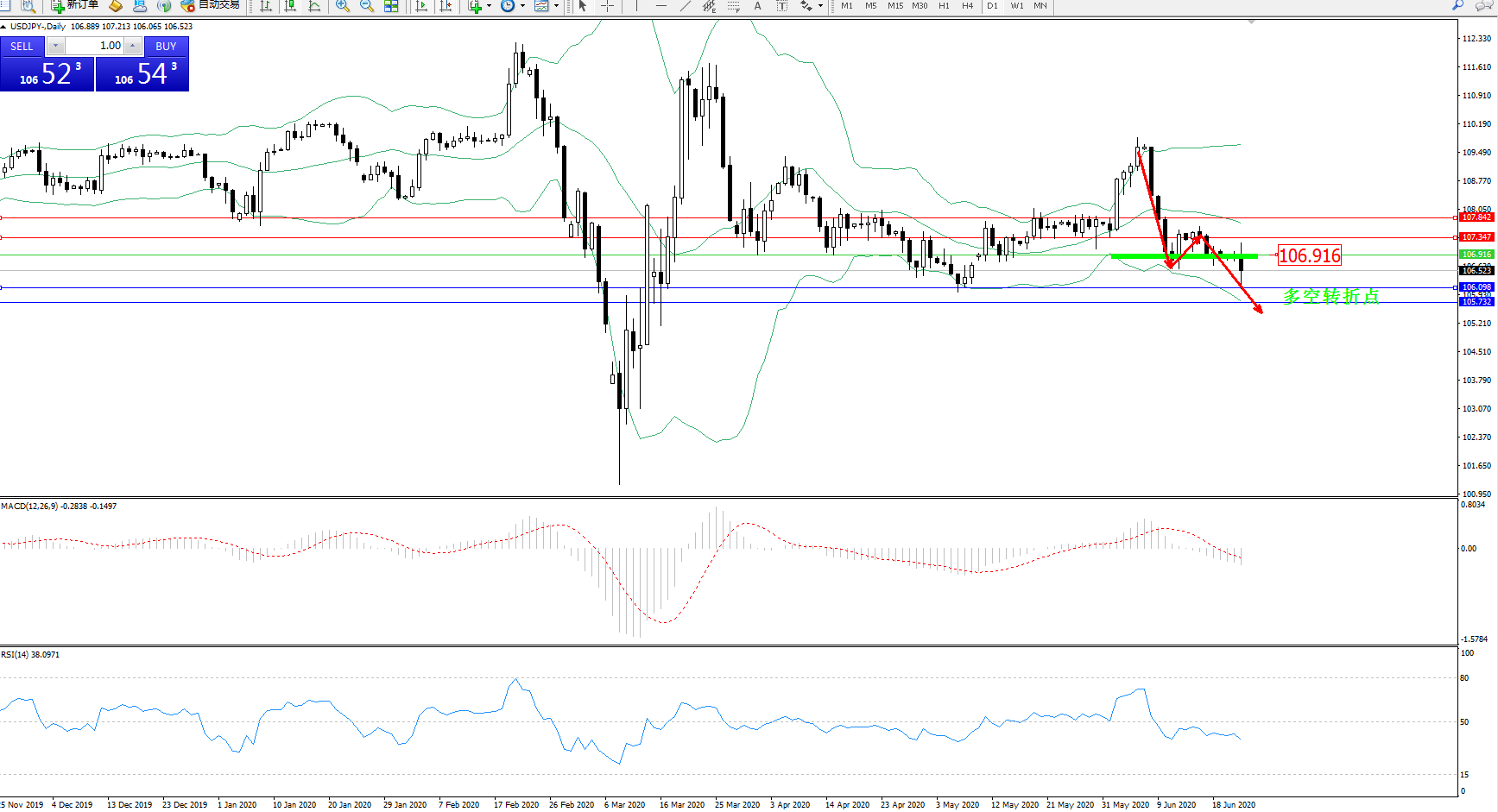 交易策略:106.916下方看跌,目标106.098105.732