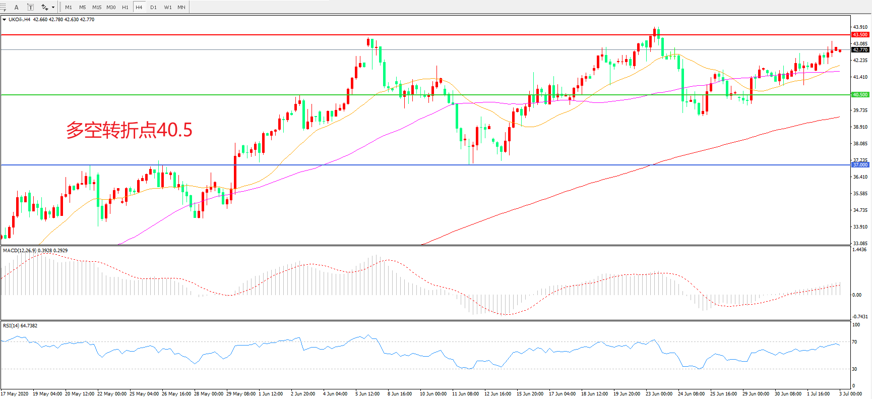 交易策略: 在40.50之上看涨,目标43.50 47.00