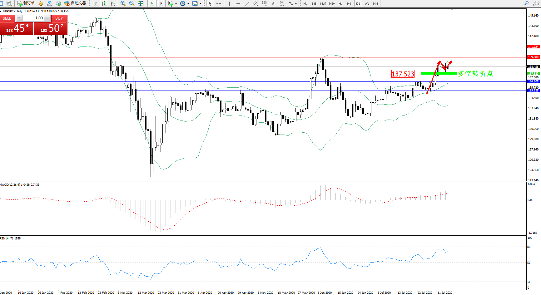 交易策略:137.523上方看涨,目标139.680、141.024