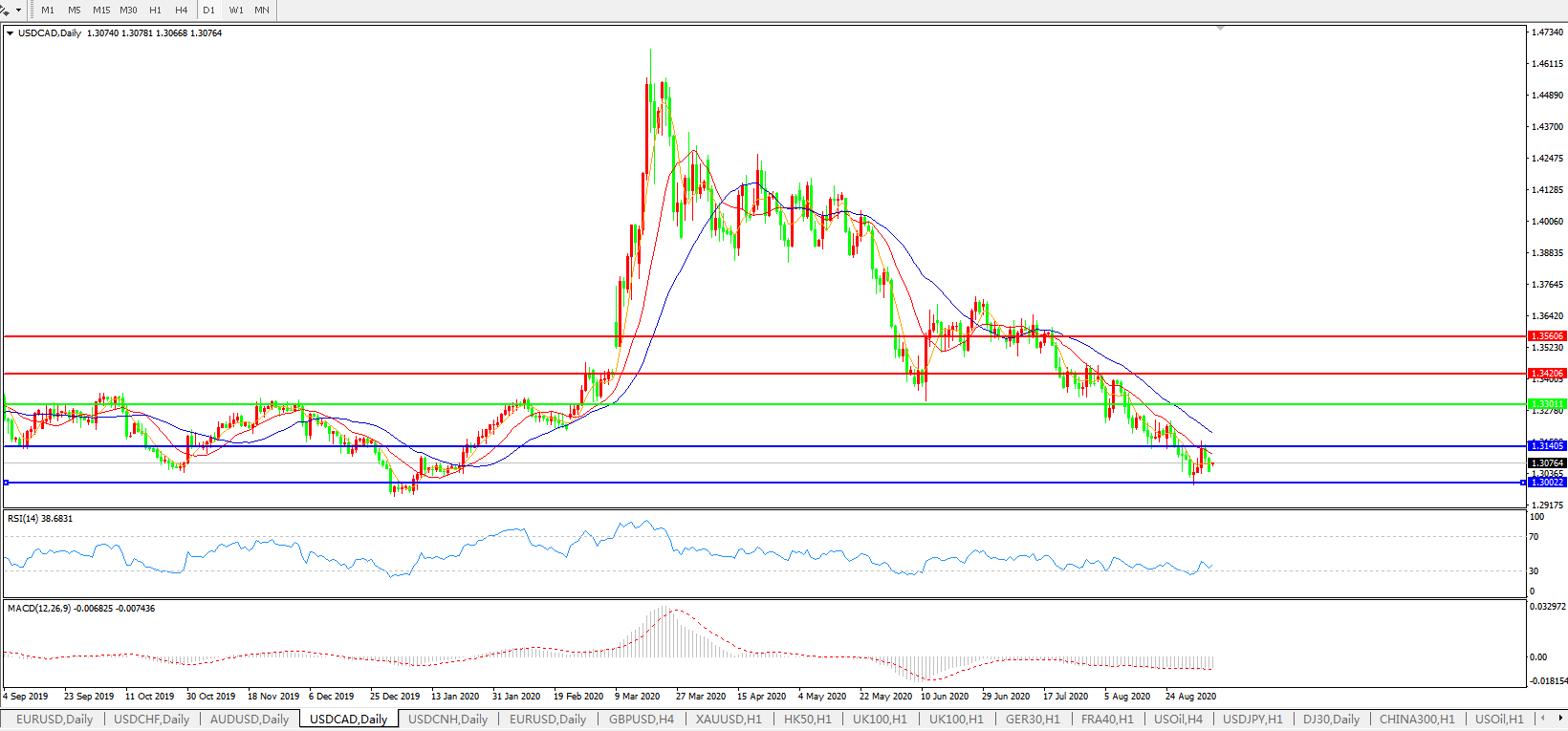 美元兑加元USDCAD 日线图: