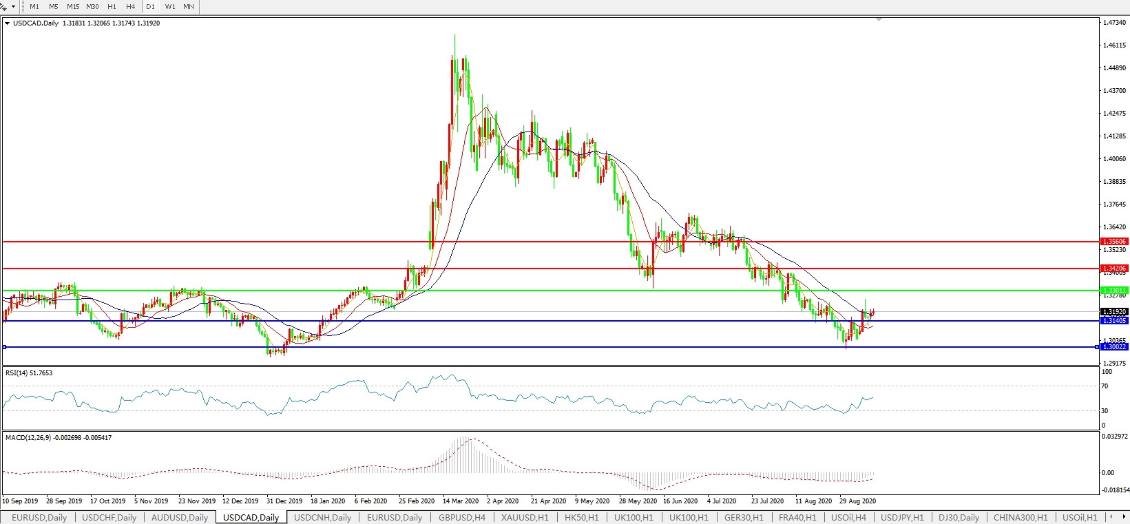 美元兑加元USDCAD 日线图: