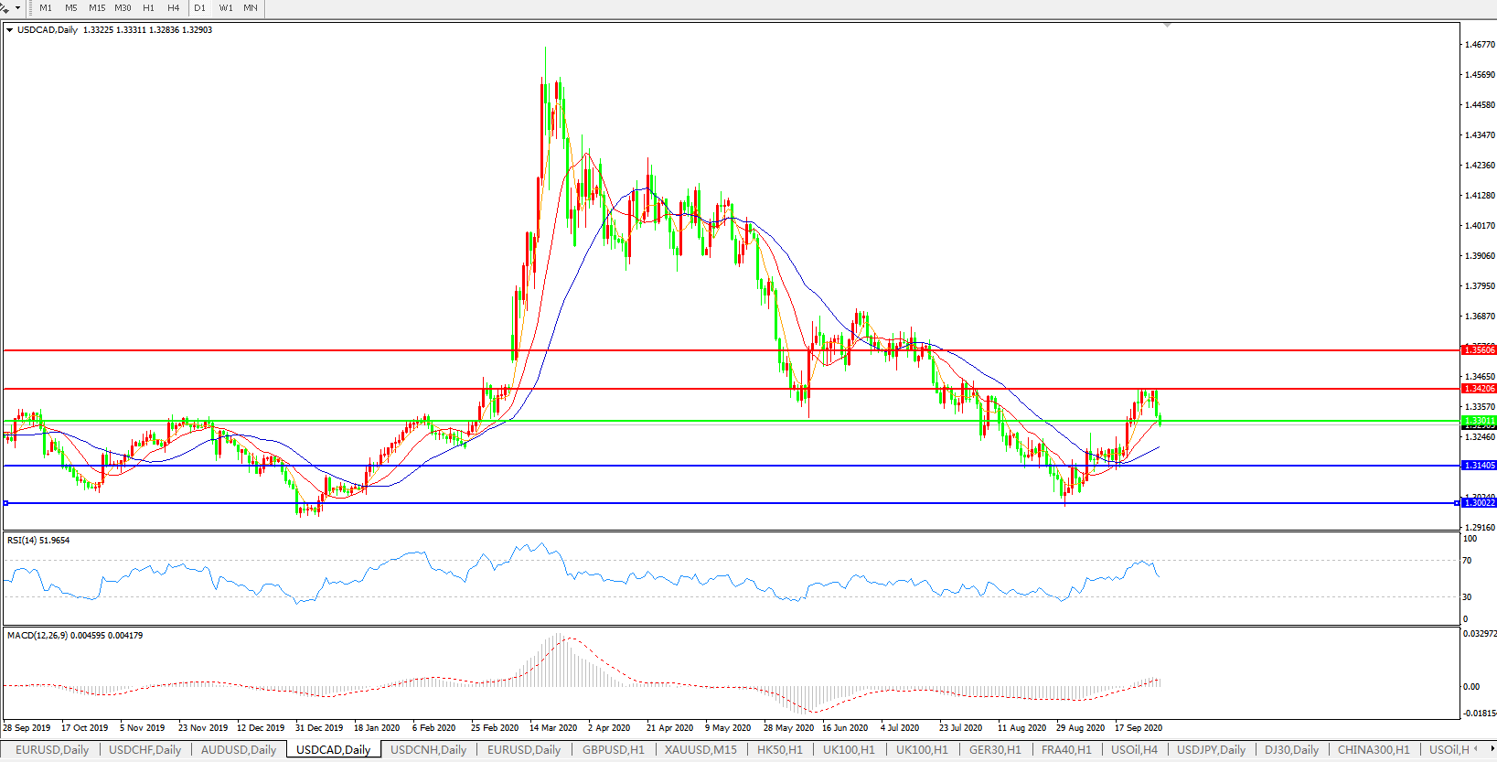 美元兑加元USDCAD 日线图:
