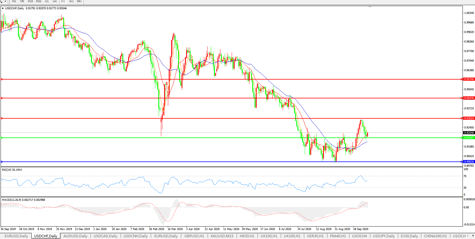 美元兑瑞郎USDCHF    日线图: