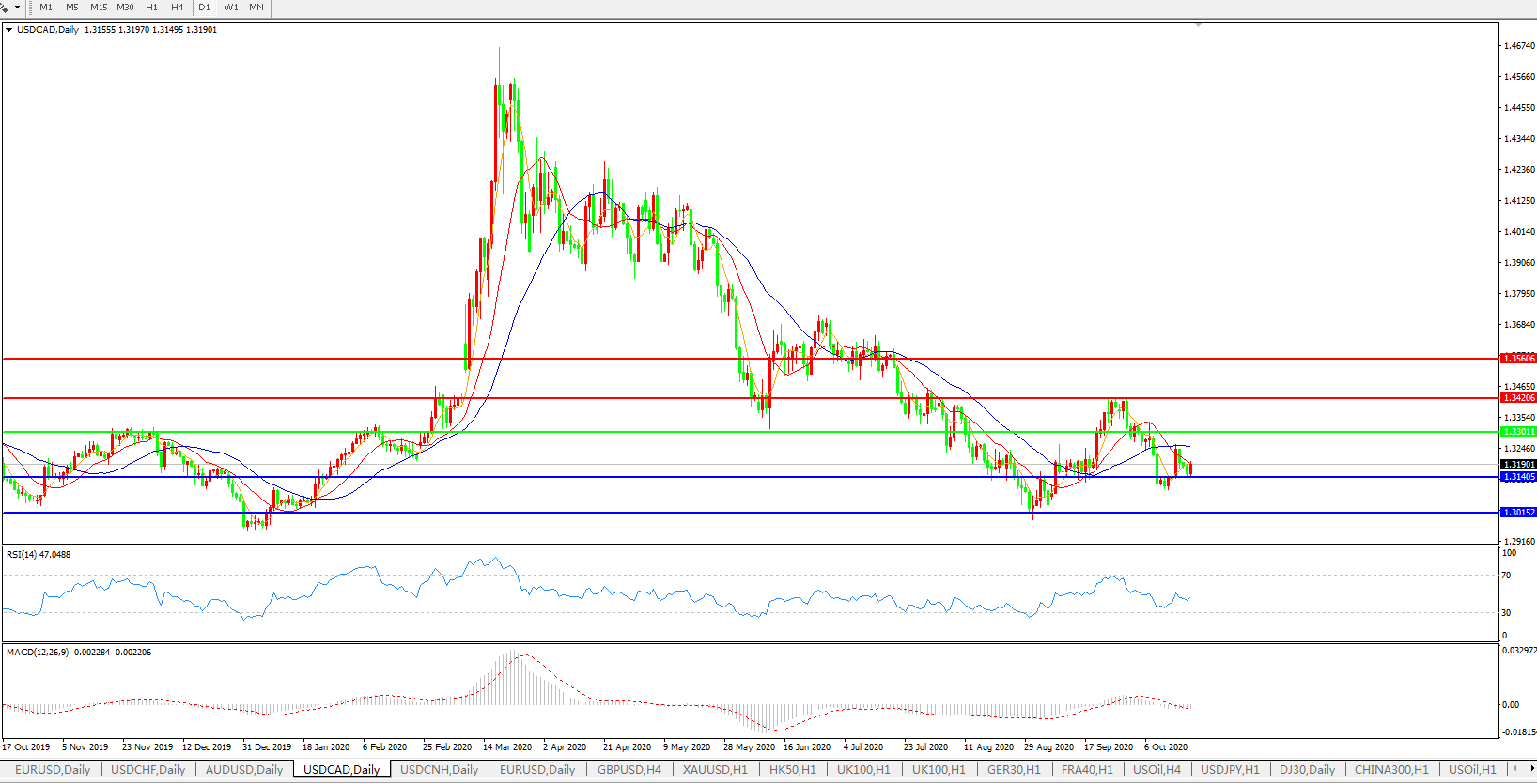 美元兑加元USDCAD    日线图: