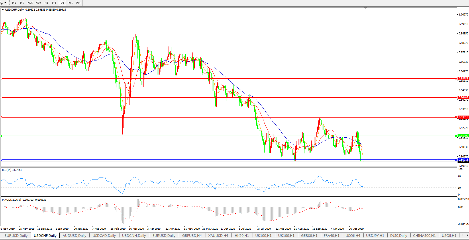 美元兑瑞郎USDCHF 日线图: