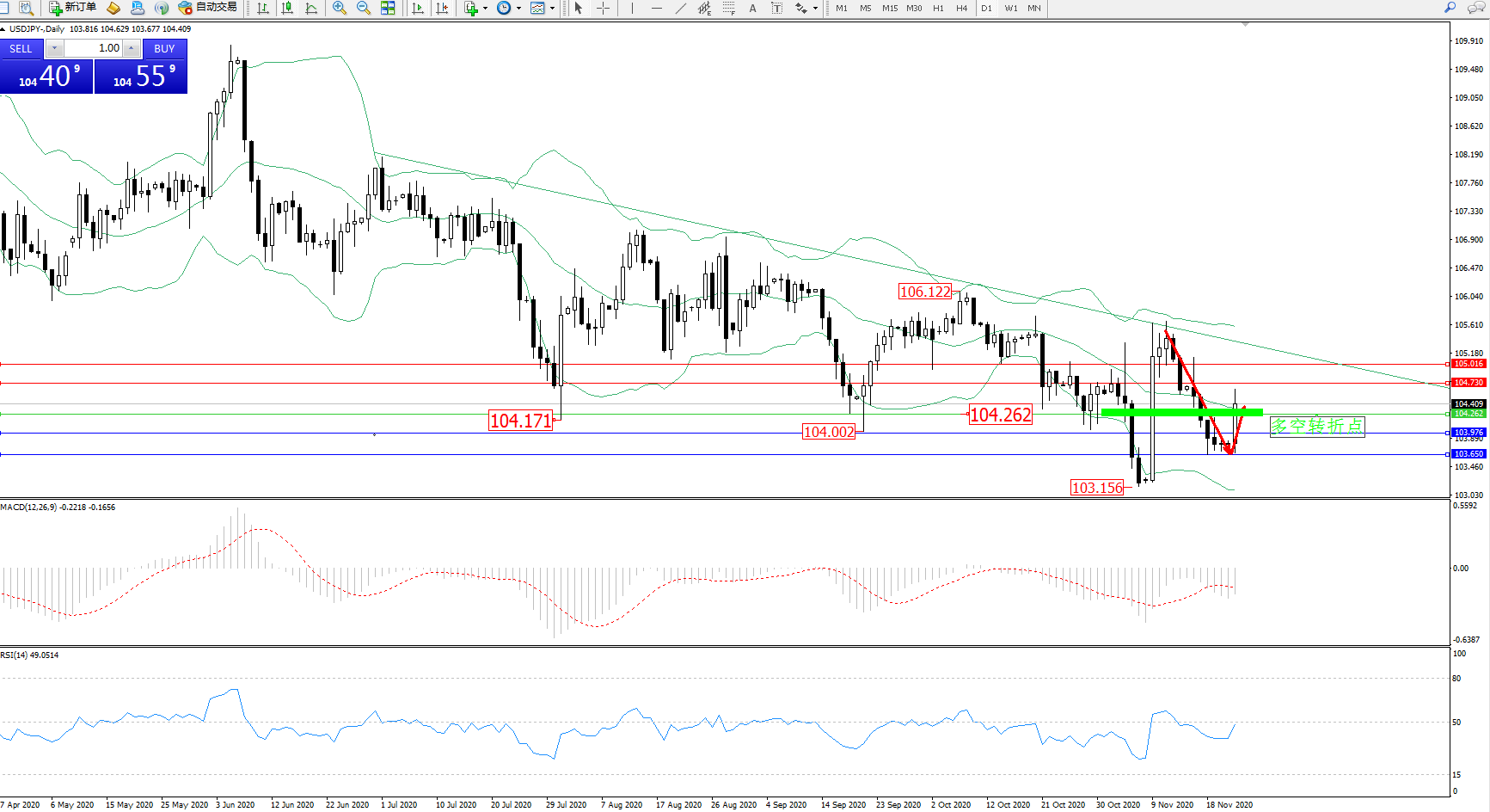 美元兑日元一度上涨0.8%至104.64,尾盘涨幅缩小至0.64%,该汇率创出11月9日以来最大涨幅;美国11月企业活动以逾五年来最快速度扩张,提振投资者对美国经济体质的乐观情绪;美国数据强劲且疫苗消息提振复苏希望;在新冠疫苗下个月获批后的一两天内就开始为医务工作者等群体接种。美国芝加哥联储主席埃文斯:美国经济遭遇新冠肺炎疫情沉重打击,目前正在复苏;不会在2021年春季之前对美国经济有一个很好的认识;越来越多的人押注美联储将在12月进一步放松货币政策。