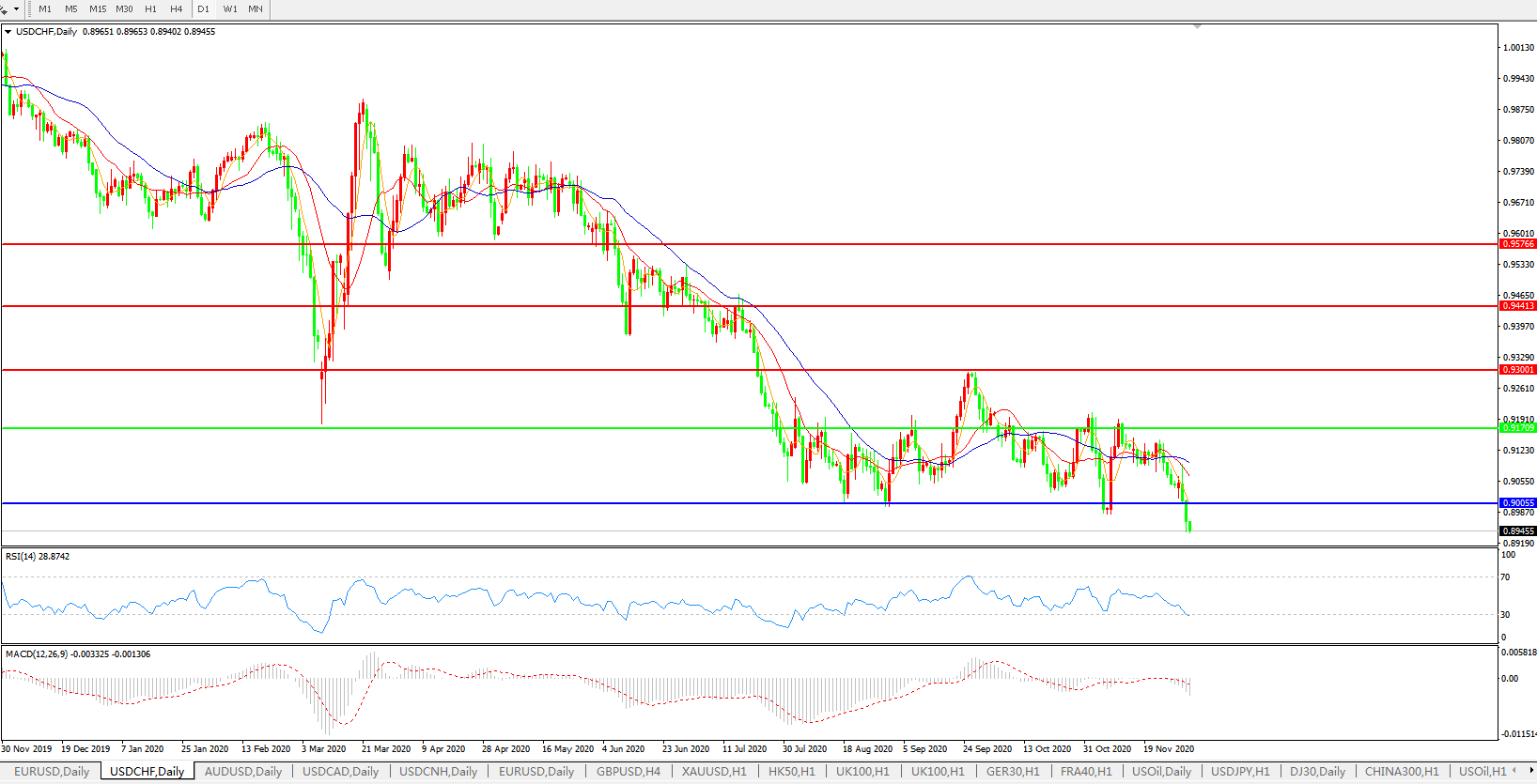 美元兑瑞郎USDCHF    日线图:
