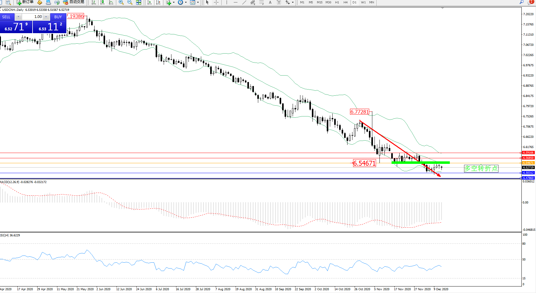 美元人民币USDCNH——日K线图显示: