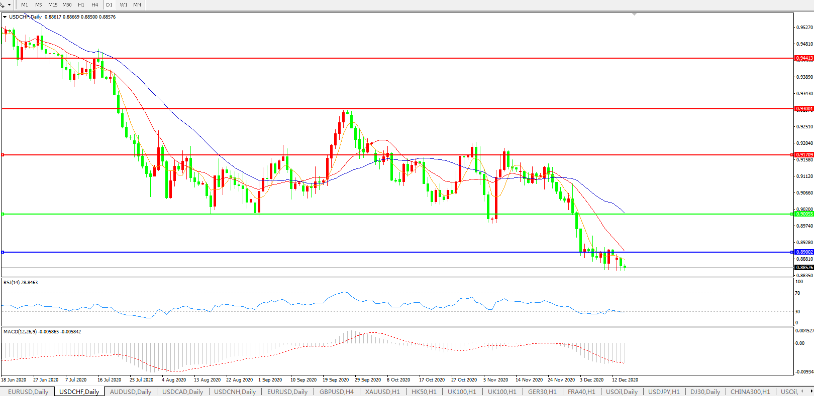 美元兑瑞郎USDCHF    日线图: