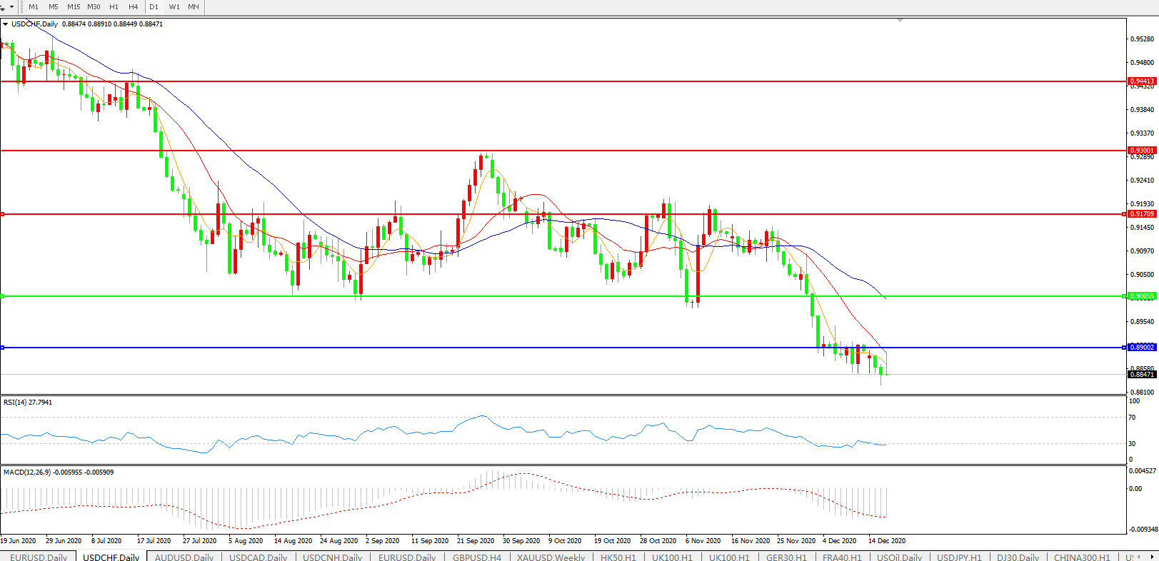 美元兑瑞郎USDCHF 日线图: