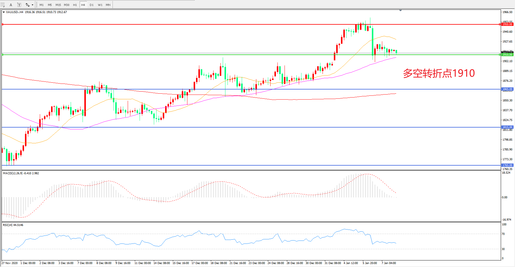 现货黄金XAU/USD    4小时图