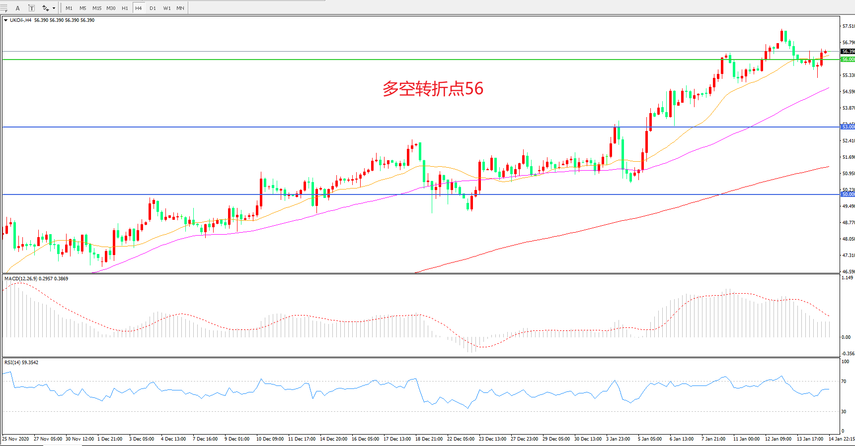 交易策略:  在56.00之上看涨,目标60.00      64.00