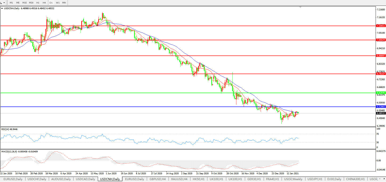 交易策略: 在6.6265之下,看跌,目标价位为6.5286,然后为6.3500。