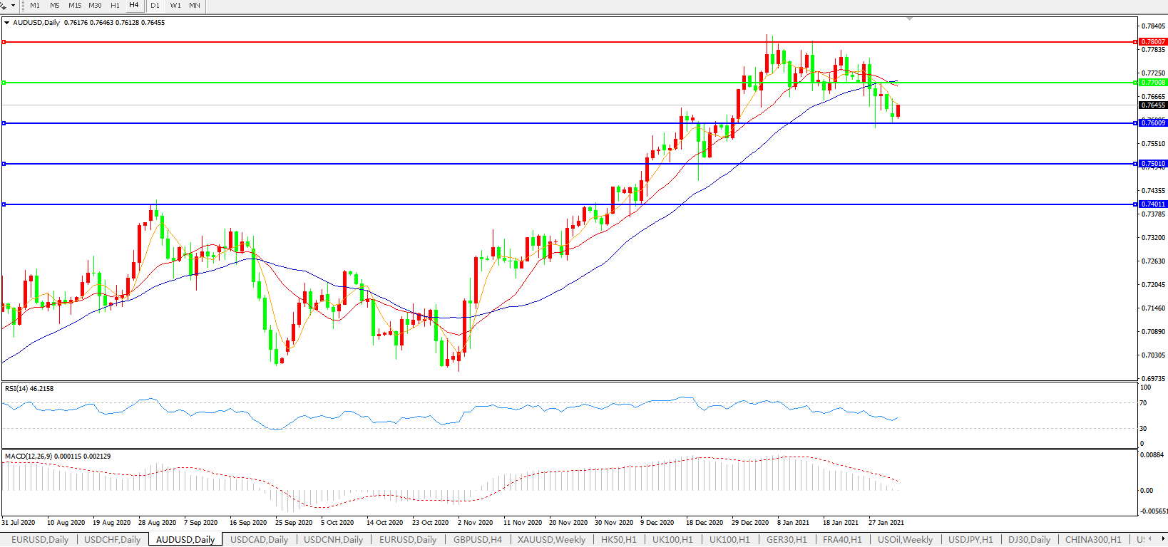 支撑位:0.7600 0.7500