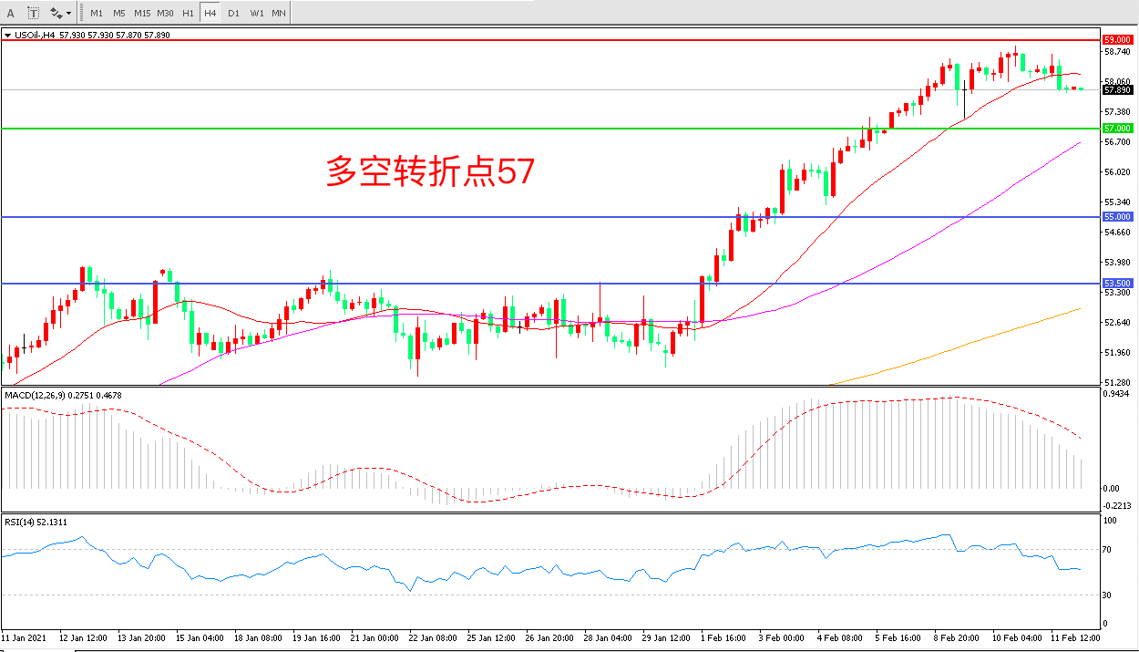 周四(2月11日),两大权威机构公布原油需求月报,欧佩克将2021年全球对欧佩克组织的原油需求预期从2720万桶/日上调至2750万桶/日,但IEA下调了原油需求预期,同时指出非欧佩克原油供应将温和增长。美国WTI原油小幅走低,收报57.92美元/桶。