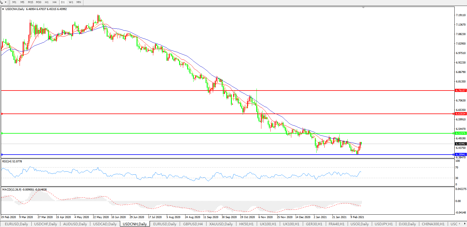 备选策略: 在6.5200之上,看涨,目标价位为6.6300,然后为6.7615。