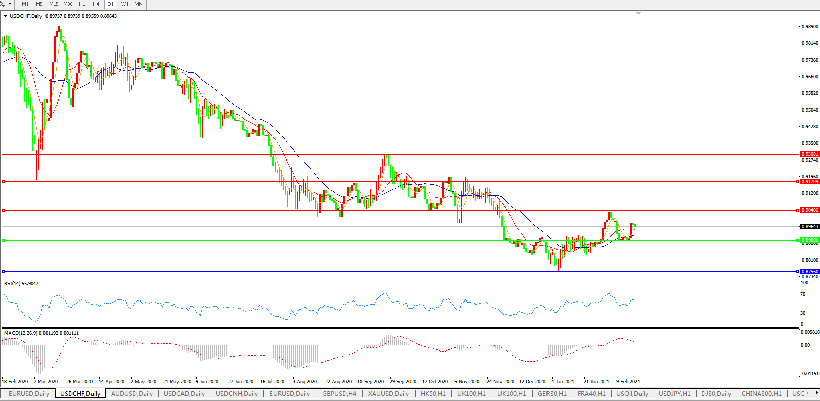 美元兑瑞郎USDCHF    日线图: