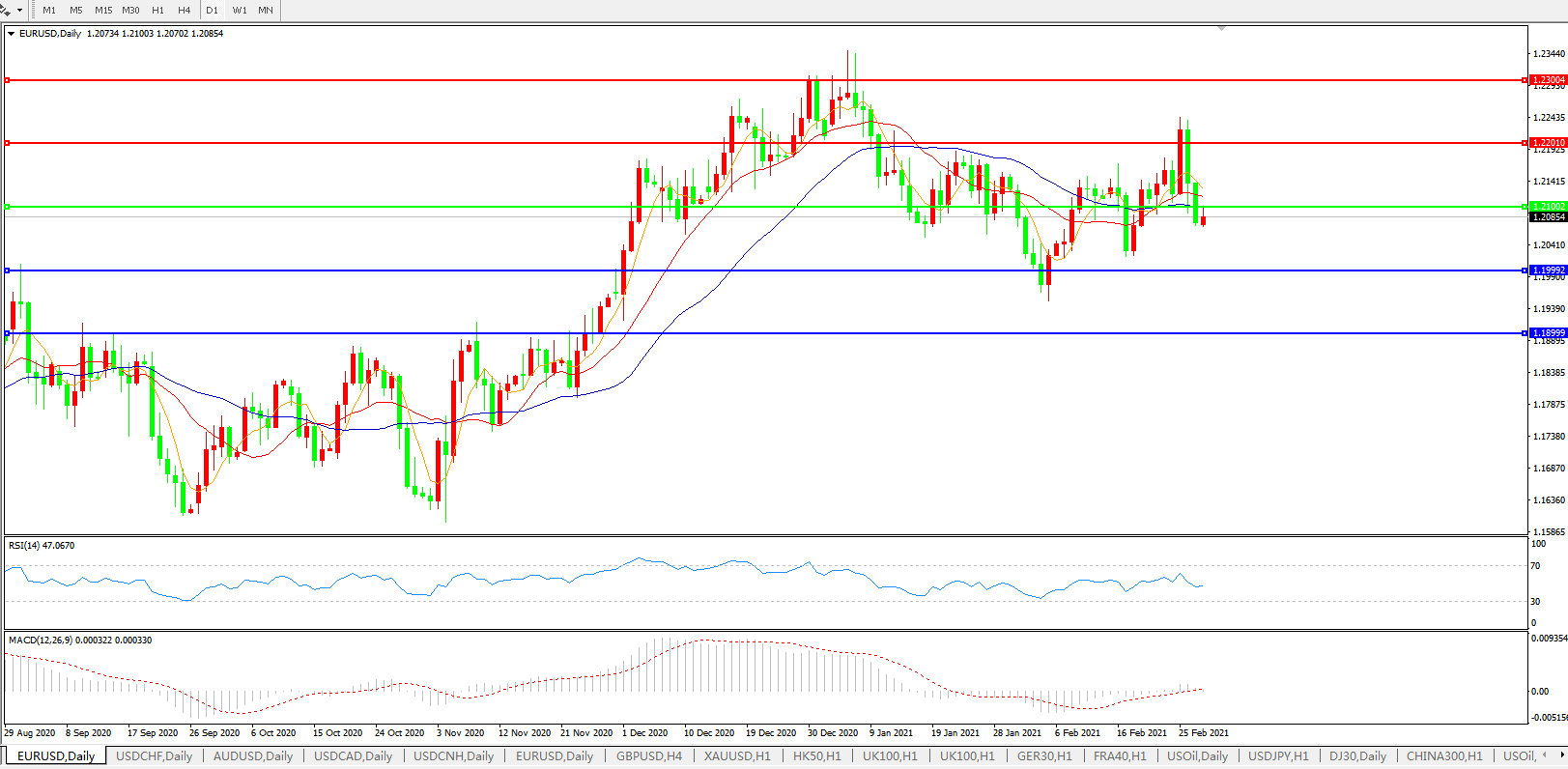 欧元兑美元EURUSD 日线图: