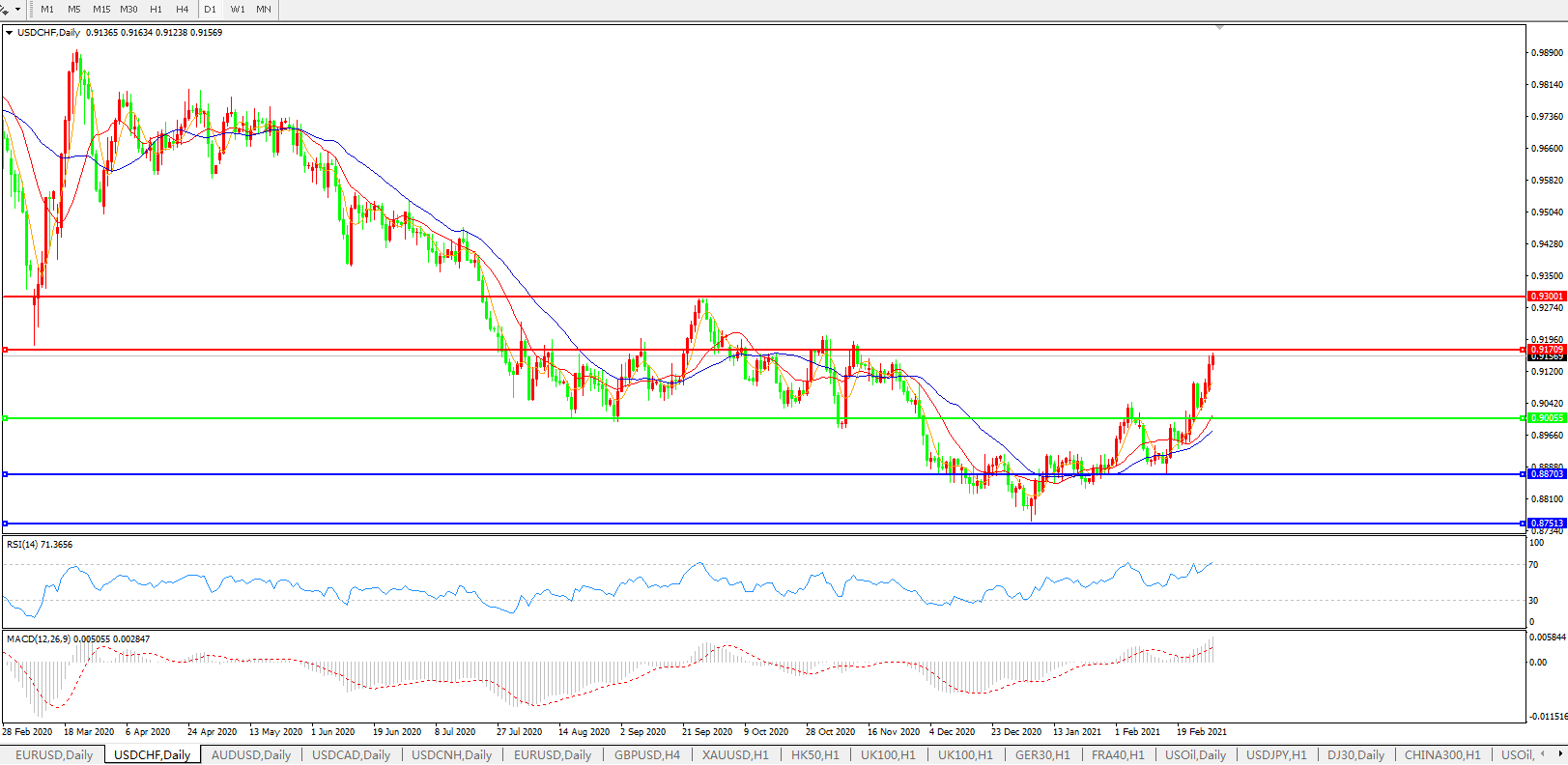 美元兑瑞郎USDCHF 日线图: