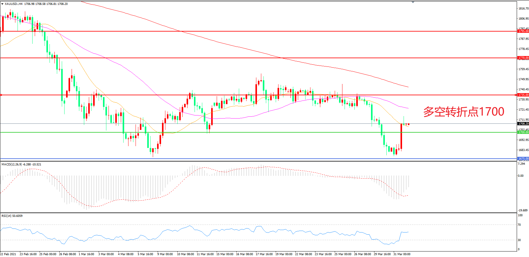 多空转折点:1700.00