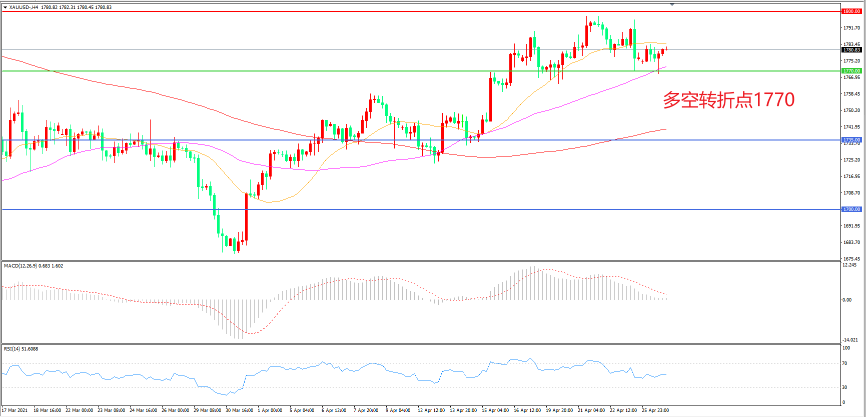 交易策略:在1770.00之上看涨,目标1800.00 1840.00