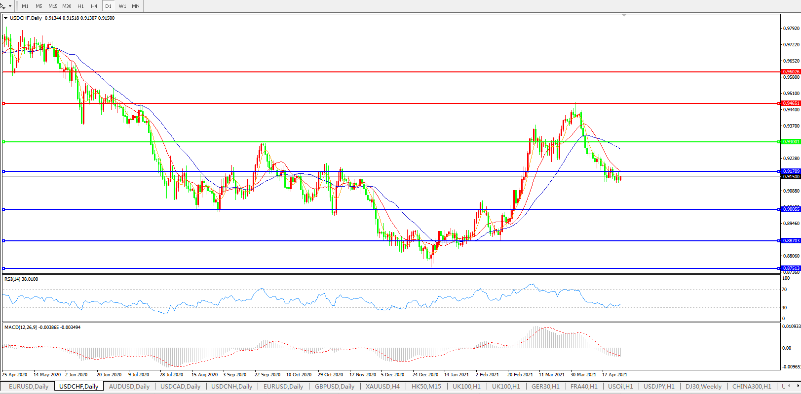 美元兑瑞郎USDCHF    日线图: