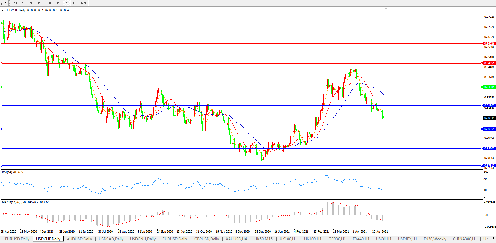 美元兑瑞郎USDCHF    日线图: