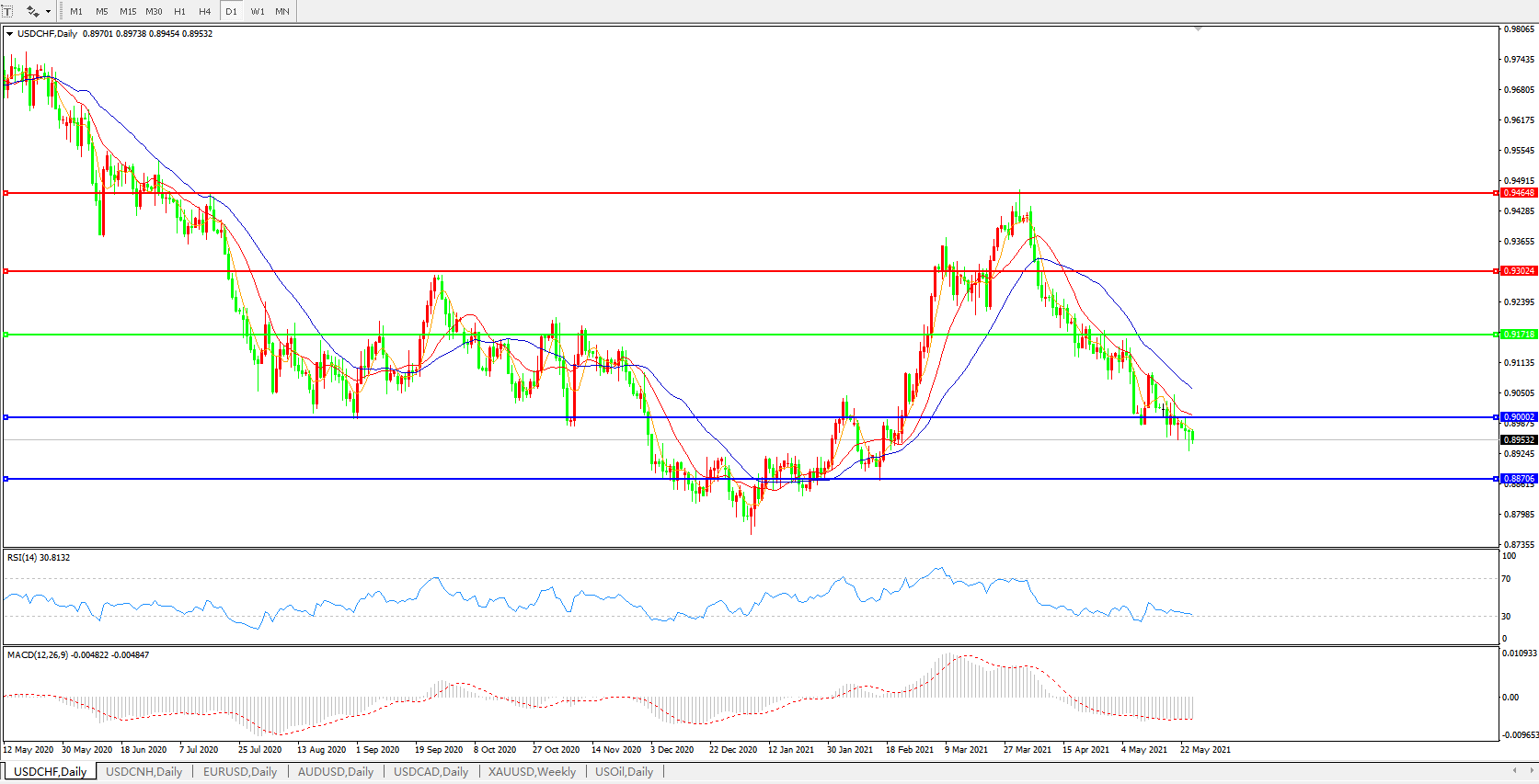 美元兑瑞郎USDCHF 日线图: