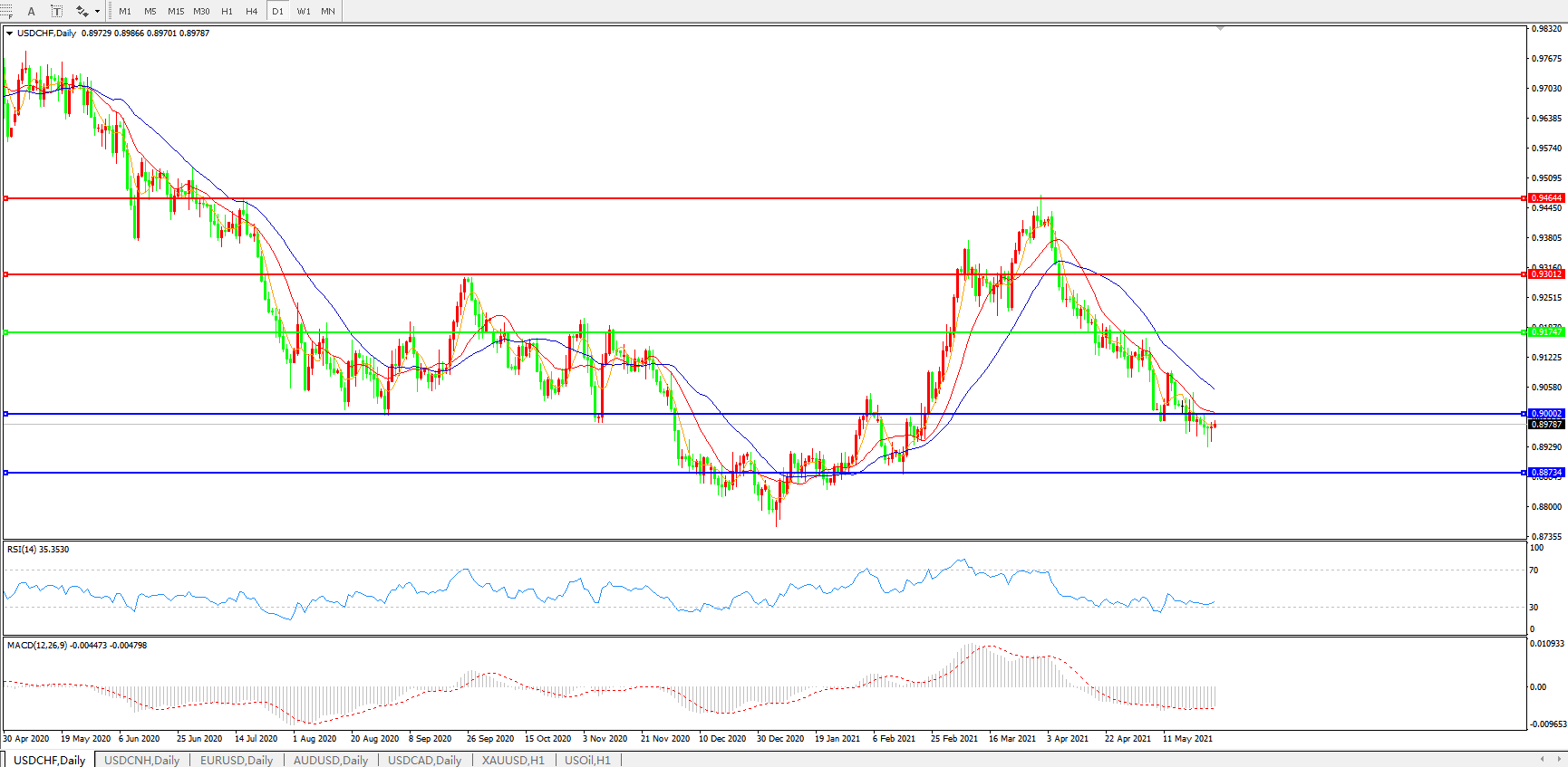 美元兑瑞郎USDCHF    日线图: