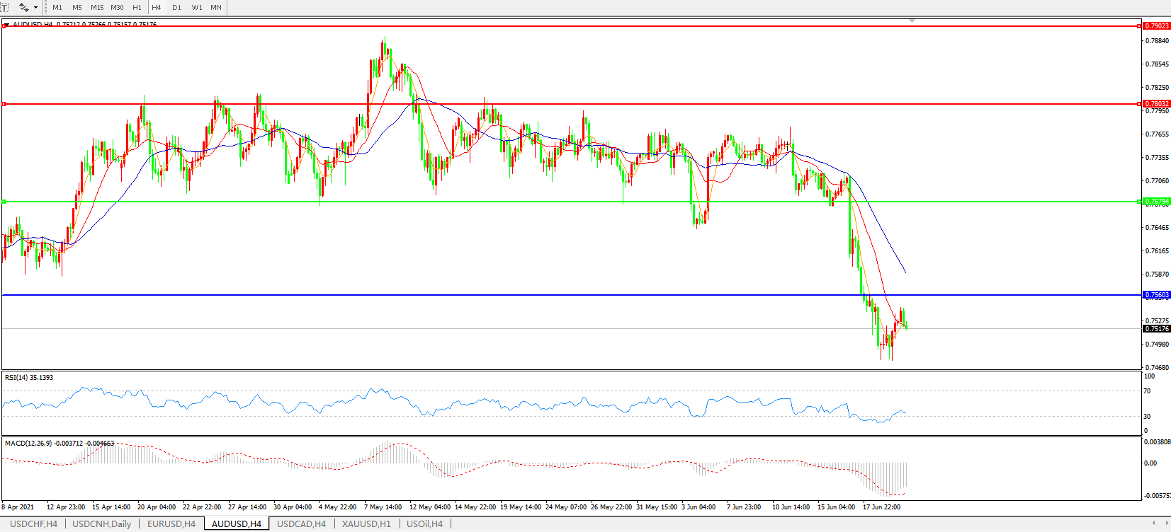 交易策略:0.7680下方看跌,目标0.7560、0.7400