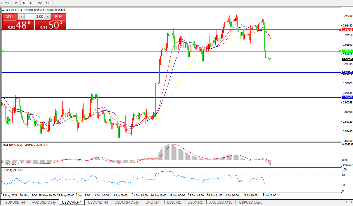 周四(7月8日)美元指数下跌0.38%,报92.37,当天公布的数据显示,美国上周初请失业金人数小幅增加,进一步表明劳动力市场从新冠疫情中的复苏仍磕磕绊绊。美元兑瑞士法郎一度下跌1.3%,是2020年3月以来最大跌幅,盘中触及0.9134,为6月17日以来最低。