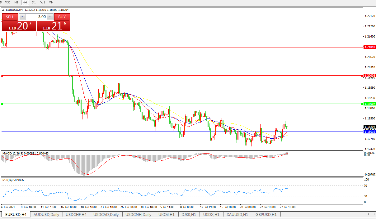技术面简析:4小时图均线开始拐头上行,汇价小幅反弹走强,MACD上穿0轴且量能0轴上持续微放量,RSI震荡走强,预计短期汇价大概率将在反弹上行。