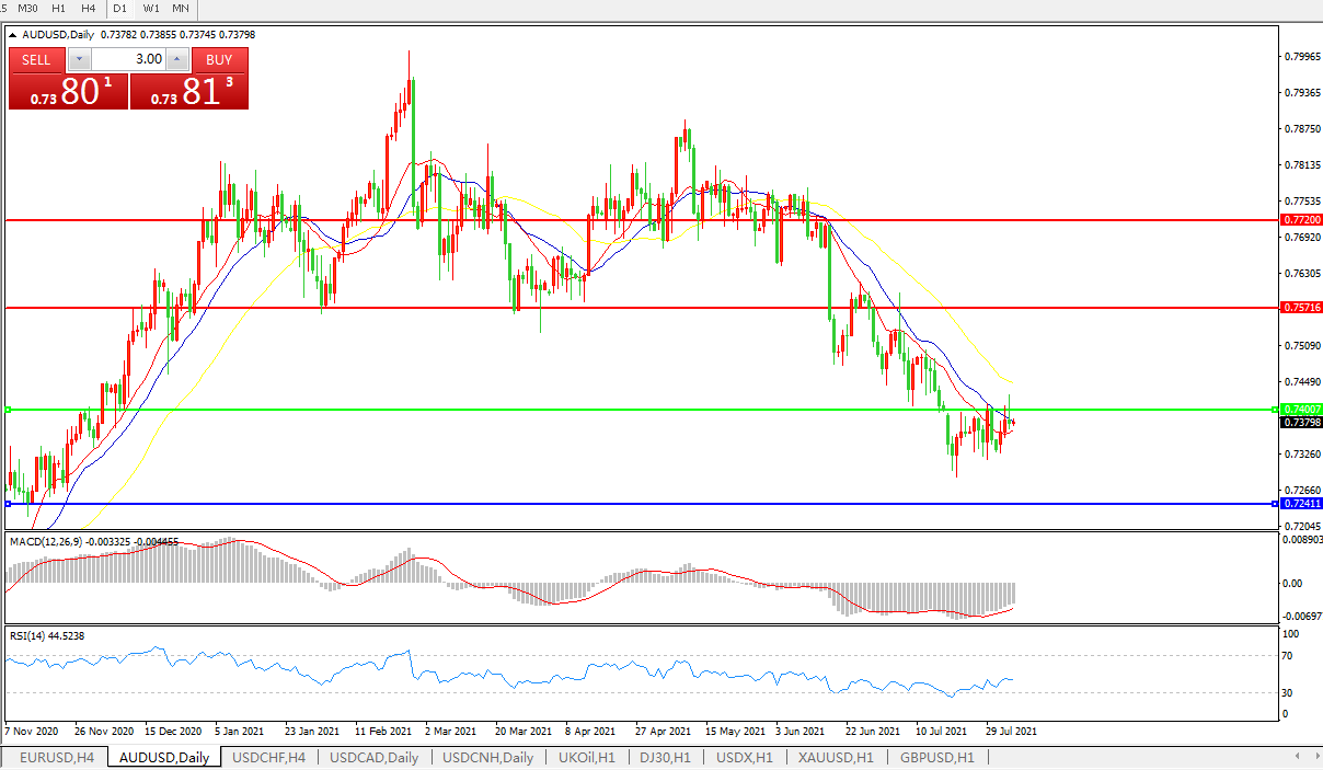 交易策略:0.7400下方看跌,目标0.7240、0.7080