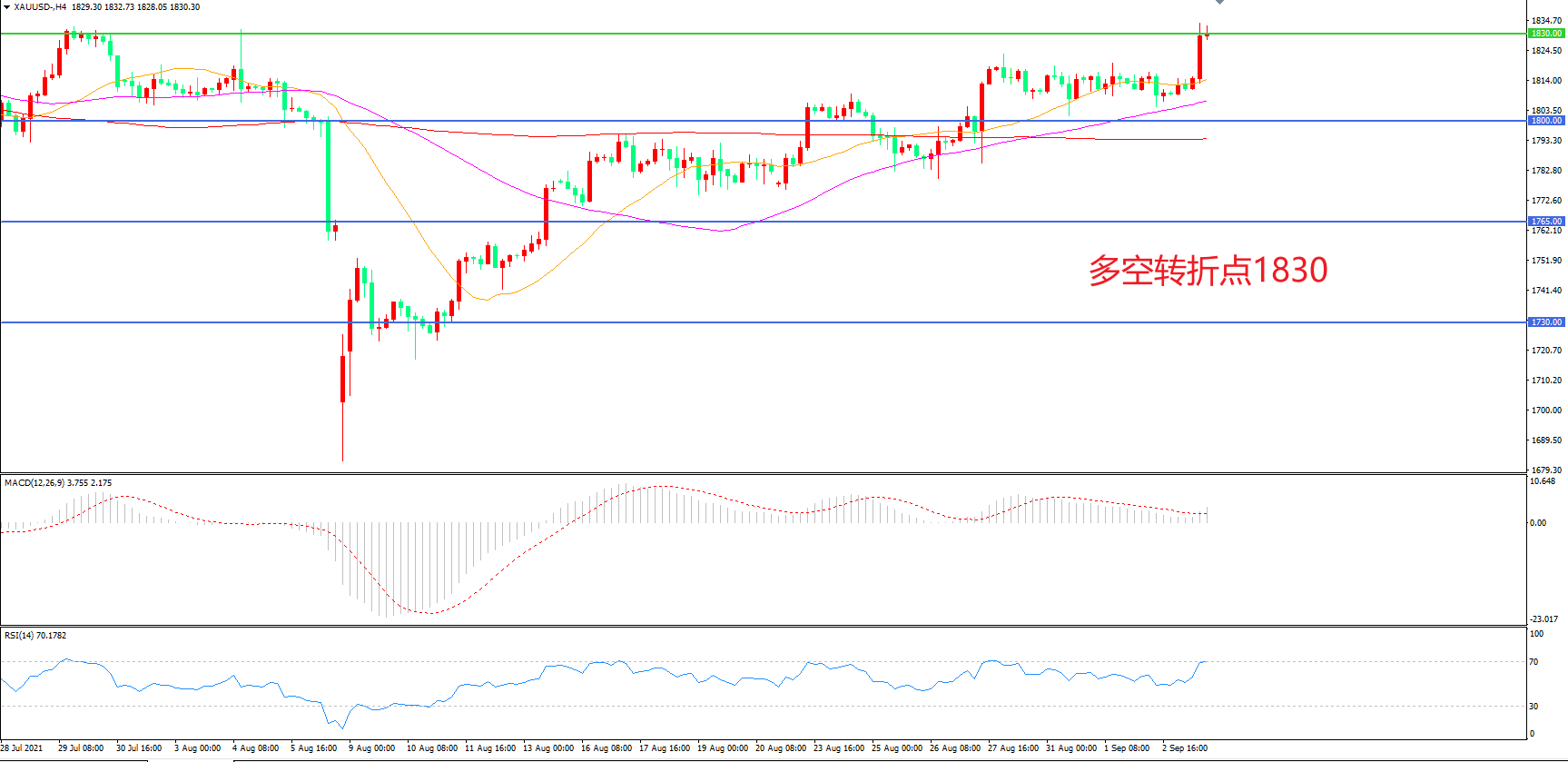 备选策略:在1830.00之下看跌,目标1800.00 1765.00