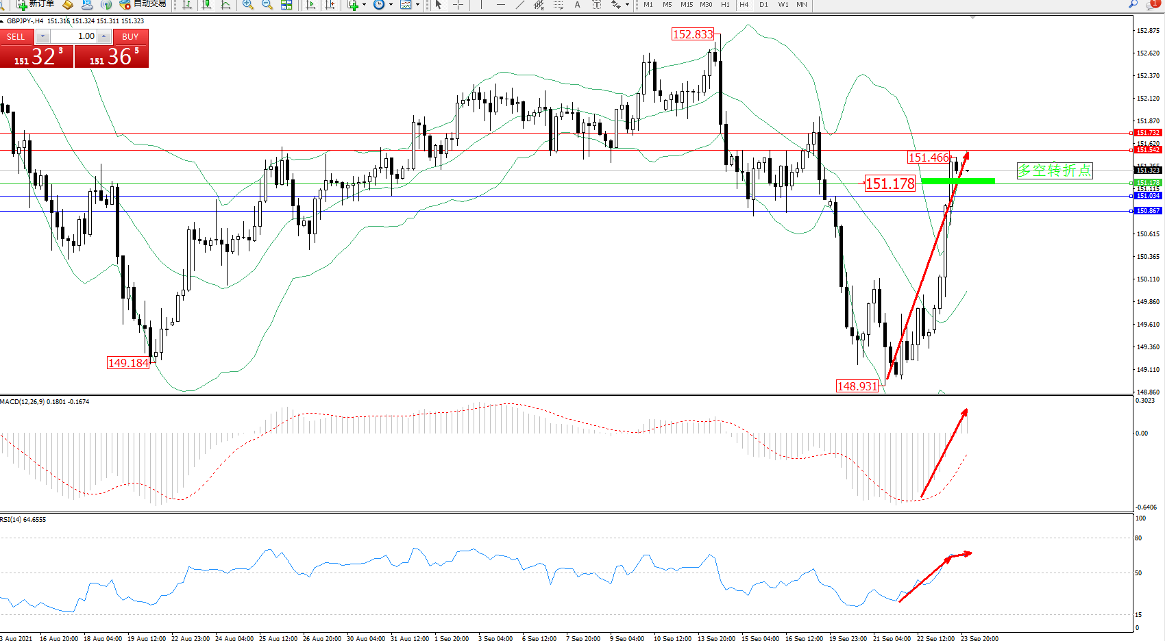 交易策略:151.178上方看涨,目标151.542、151.732