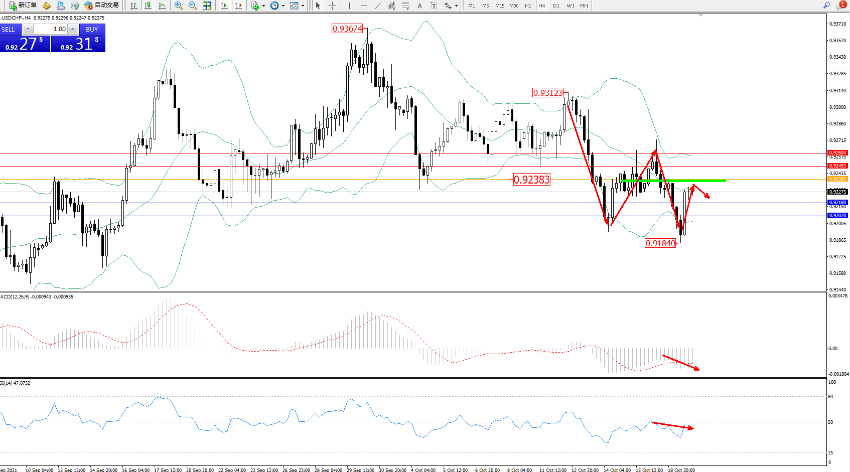 交易策略:0.92383下方看跌,目标0.92180、0.92070