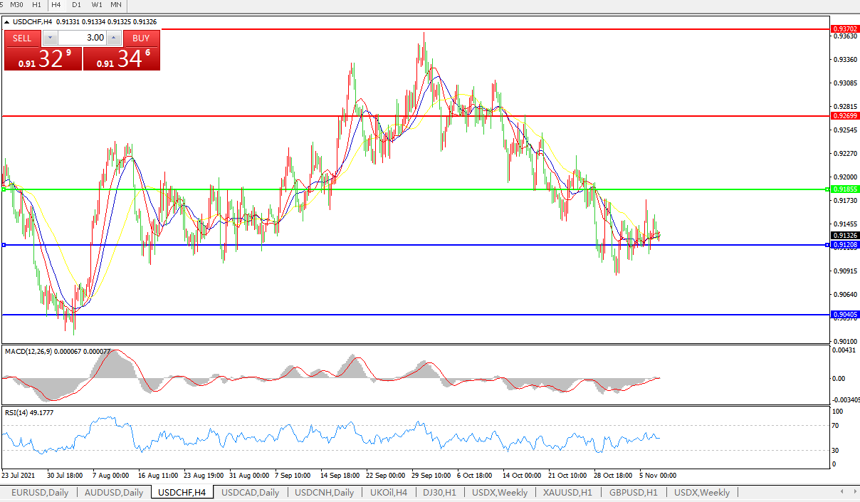 交易策略:0.9180下方看跌,目标0.9120、0.9040