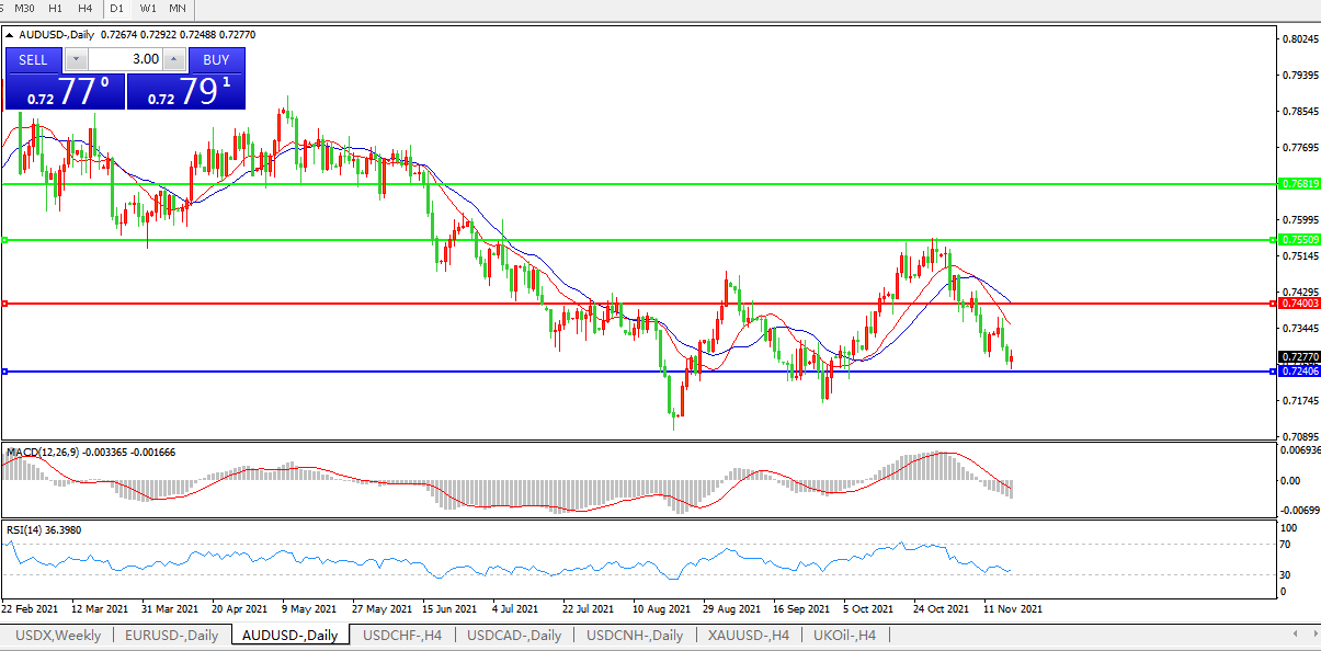交易策略:0.7400下方看跌,目标0.7240、0.7080