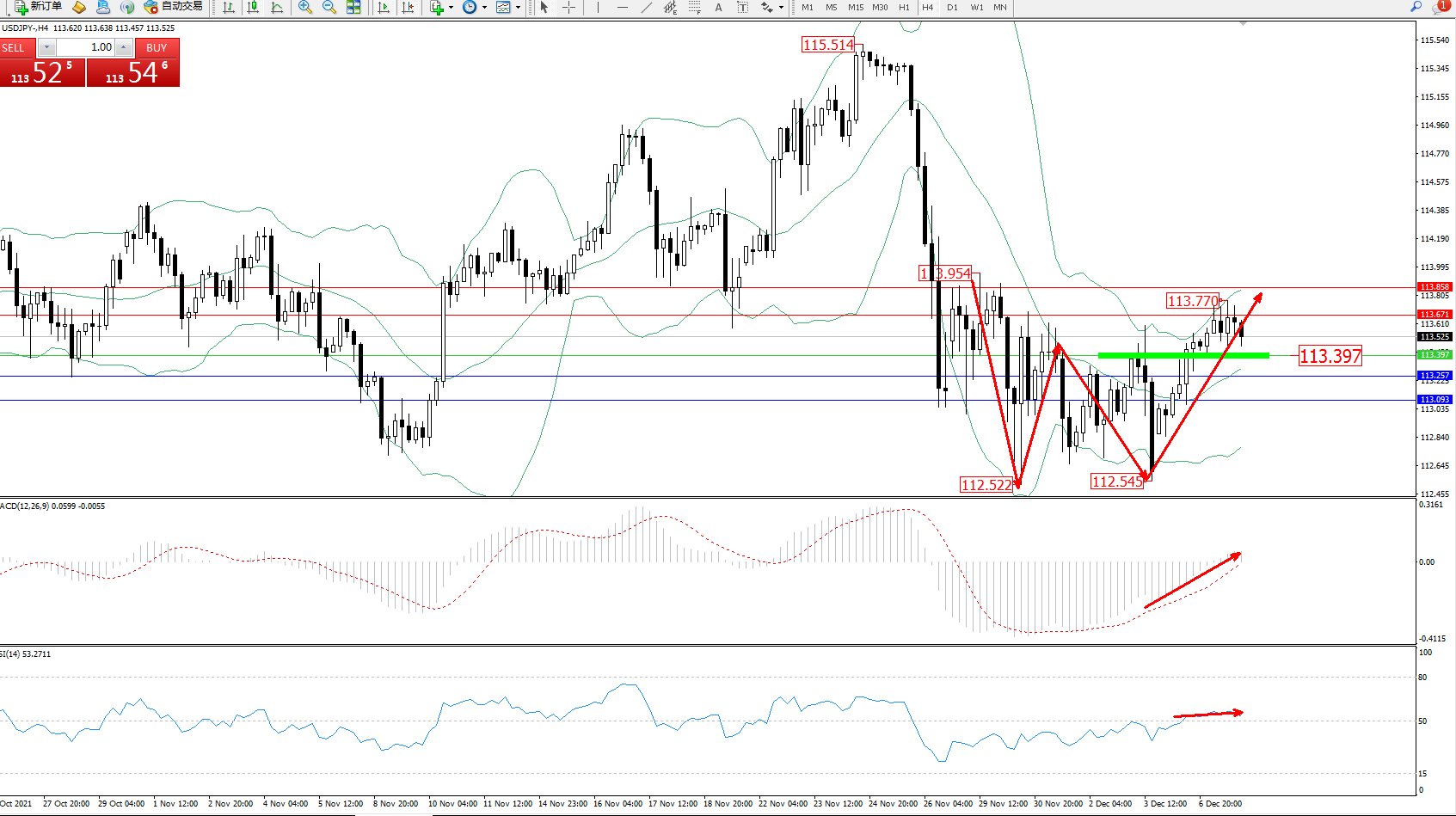 交易策略:113.397上方看涨,目标113.671、113.858