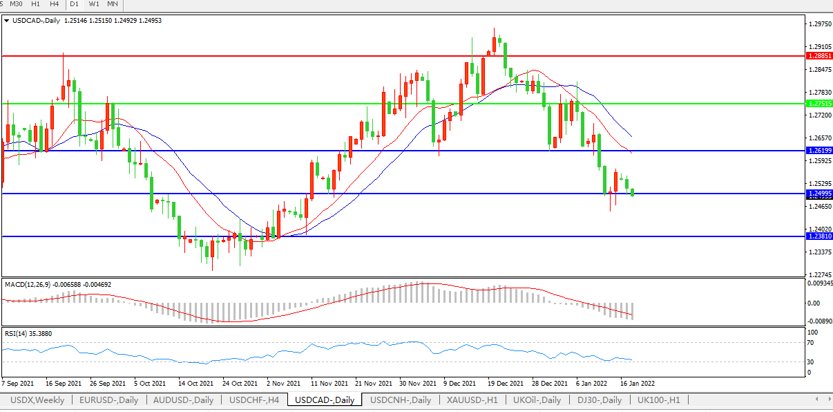 美元兑加元USDCAD 日线图: