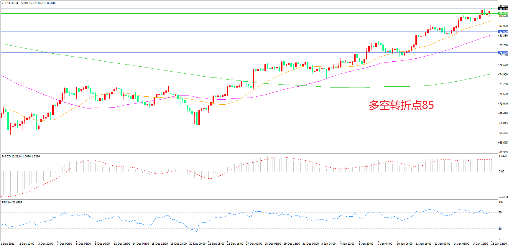多空转折点:85.00