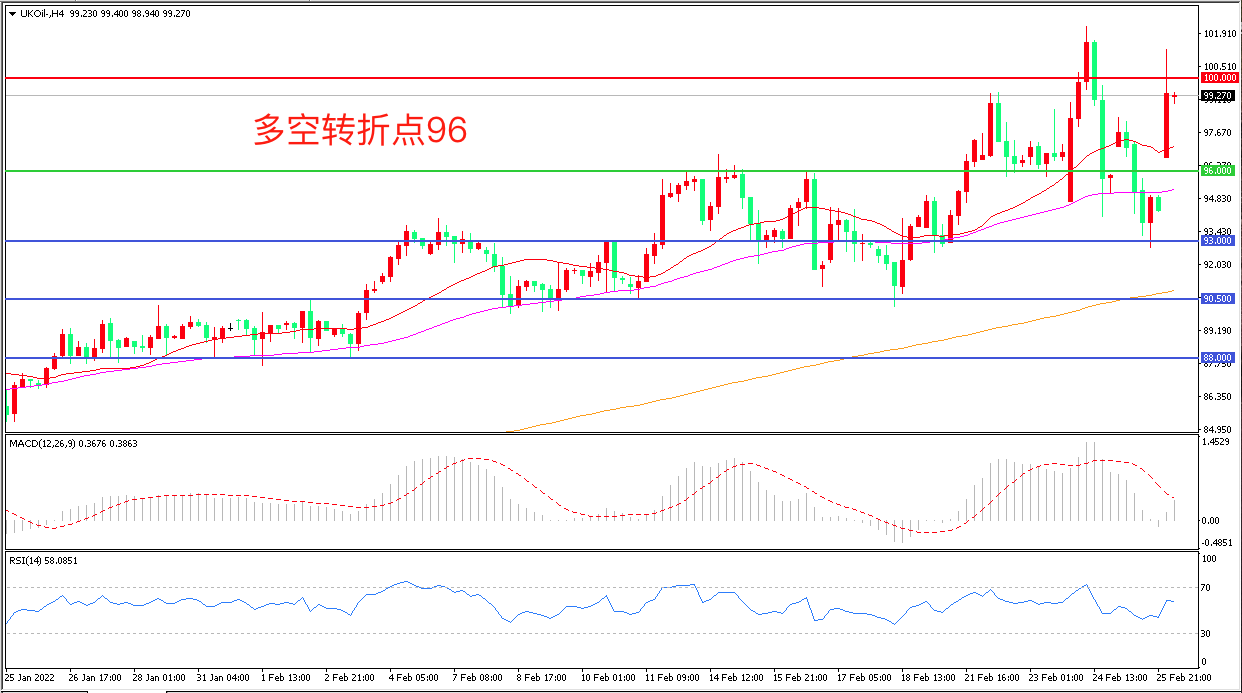 交易策略:在96.00之上看涨,目标100.00 103.00