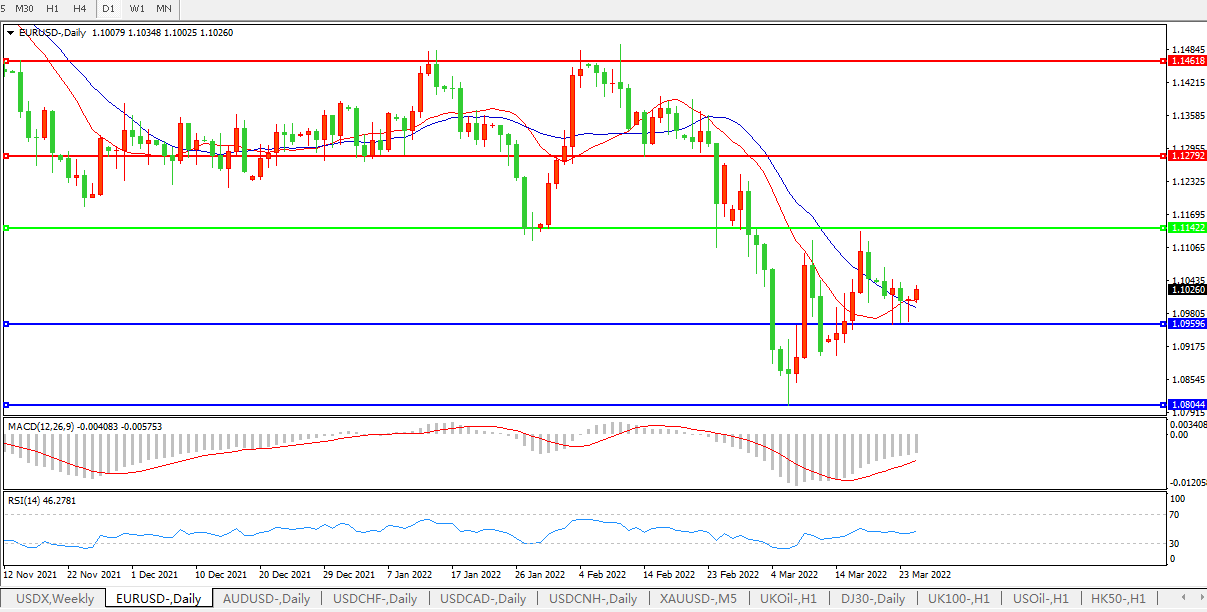 欧元兑美元基本持平于1.1003;根据采购经理调查,在新冠疫情管制措施放松之后,德国和法国的商业活动都受到了服务业的提振,但是由于俄乌战争对于制造业的影响,上述两国的经济都面临不确定性。调查报告称,欧元区制造商面临零部件和原材料成本的空前上涨。