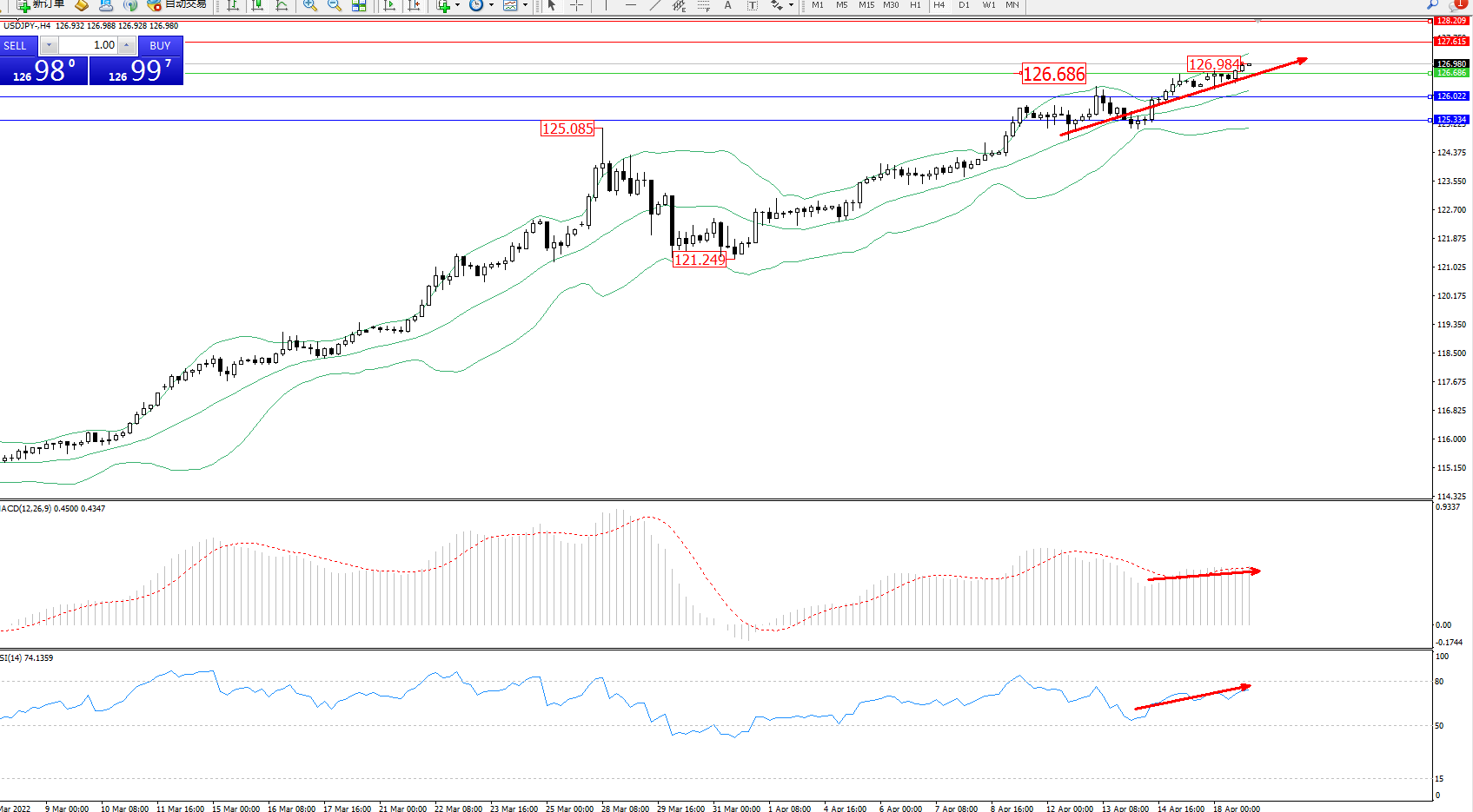 交易策略:126.686上方看涨,目标127.615、128.209