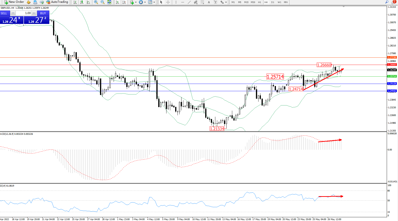 交易策略:1.25714上方看涨,目标1.26660、1.27238