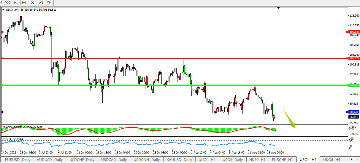 USOIL:事件推动,油价弱势